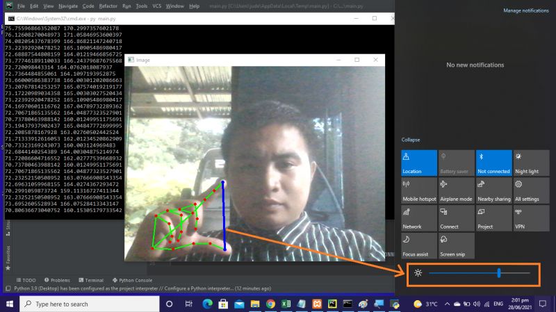 - Brightness Control with Hand Detection OpenCV Python Source Code