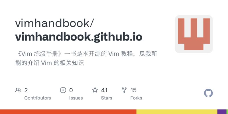 - GitHub - vimhandbook/vimhandbook.github.io: 《Vim 练级手册》一书是本开源的 Vim 教程,尽我所能的介绍 Vim 的相关知识